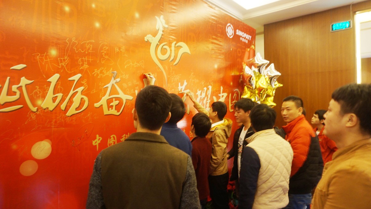 員工簽名 主持人登場(chǎng) 倒數(shù)10秒,年會(huì)以振奮人心的先導(dǎo)片開(kāi)場(chǎng),先導(dǎo)片播放一張張中圖2016年發(fā)展的照片,回顧這一年里大家共同努力的瞬間。接著由張總助、初總監(jiān)、劉總助分別講述我們本年度大事記TOP3。公司銷(xiāo)量全國(guó)領(lǐng)先、二期擴(kuò)產(chǎn)、新資本引進(jìn)等事件讓全場(chǎng)觀眾振奮人心。