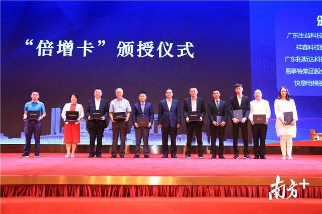 現(xiàn)場為10名企業(yè)頒發(fā)倍增卡 當(dāng)天上午,會上進行了倍增卡頒授儀式,梁維東書記為搜于特集團股份有限公司、廣東長盈精密技術(shù)有限公司、東莞市中圖半導(dǎo)體科技有限公司、廣東眾生藥業(yè)股份有限公司、玖龍紙業(yè)(東莞)有限公司、廣東生益科技股份有限公司、祥鑫科技股份有限公司、廣東拓斯達科技股份有限公司、易事特集團股份有限公司、快意電梯股份有限公司10家試點企業(yè)頒授了首批“倍增卡”。 東莞給倍增企業(yè)發(fā)放“倍增卡”是“倍增10條”中一項創(chuàng)新舉措,持卡人可在任意一間二級以上公立醫(yī)院、各級行政辦事窗口享受綠色通道服務(wù)。不僅如此,“倍增計劃”市級試點企業(yè)主要負責(zé)人發(fā)放“倍增卡”,持卡人能憑倍增卡約見部門領(lǐng)導(dǎo)。