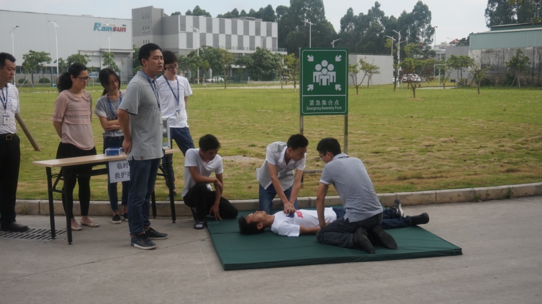救護組現(xiàn)場進行“心肺復(fù)蘇“急救演練