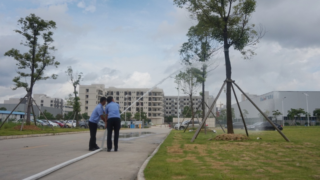 警戒保衛(wèi)組進行消防水帶撲救演練