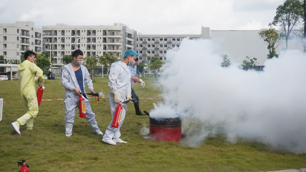 2017年度“安全生產(chǎn)月”消防演習(xí) 特種設(shè)備及?;窇?yīng)急預(yù)案演練來源:中圖科技 發(fā)布時(shí)間:2017-09-07 點(diǎn)擊:4348 次為提高全體員工的消防安全意識(shí),檢驗(yàn)公司消防設(shè)施的功能,增強(qiáng)員工在緊急情況下的應(yīng)變能力,自我防護(hù)能力,使每個(gè)員工都懂消防知識(shí),遇到火警、火災(zāi)時(shí)知道如何逃生、如何疏散人員、如何進(jìn)行緊急救護(hù)、如何撲滅初期火情,公司于2017年6月23日星期五上午8:10開展了消防演習(xí),在各應(yīng)急小組的密切配合下,分別進(jìn)行了緊急疏散集合、應(yīng)急救護(hù)模擬、初期火災(zāi)撲救、硫酸泄漏應(yīng)急、液氮泄漏應(yīng)急等專項(xiàng)演練。