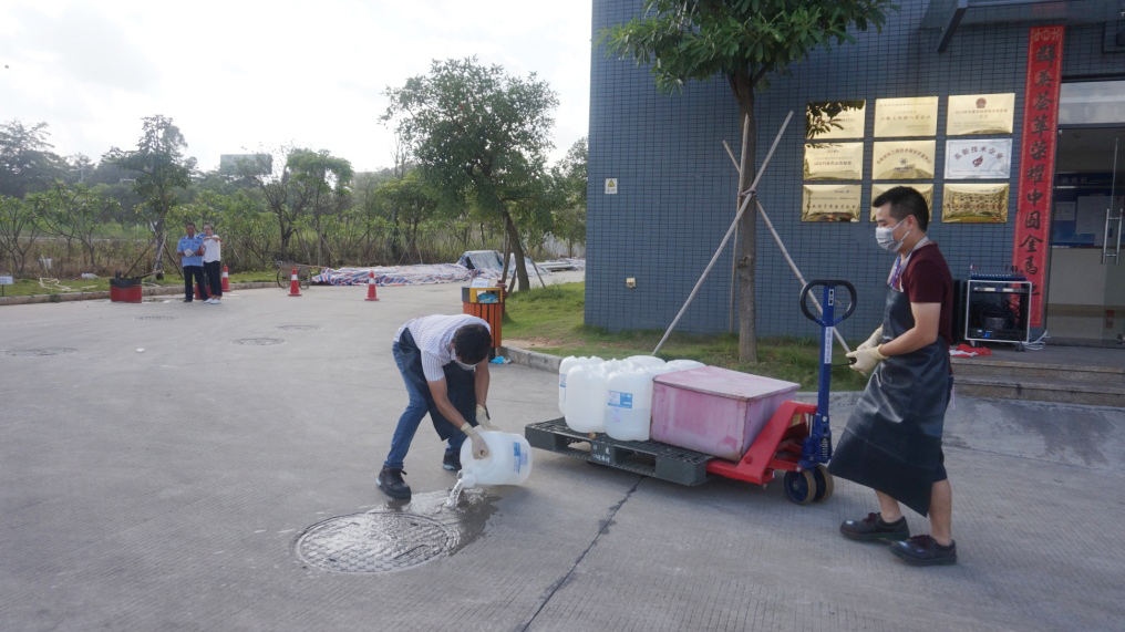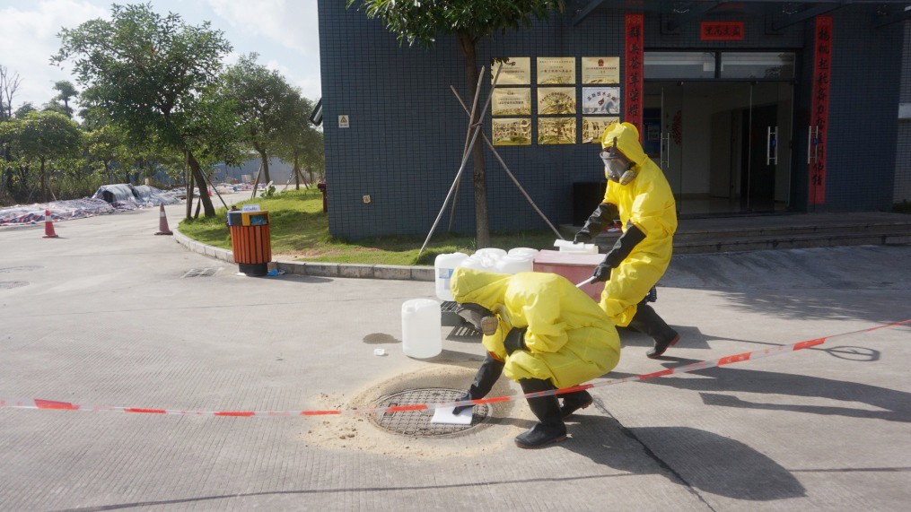 ![]() ![]() 硫酸泄漏應(yīng)急演練