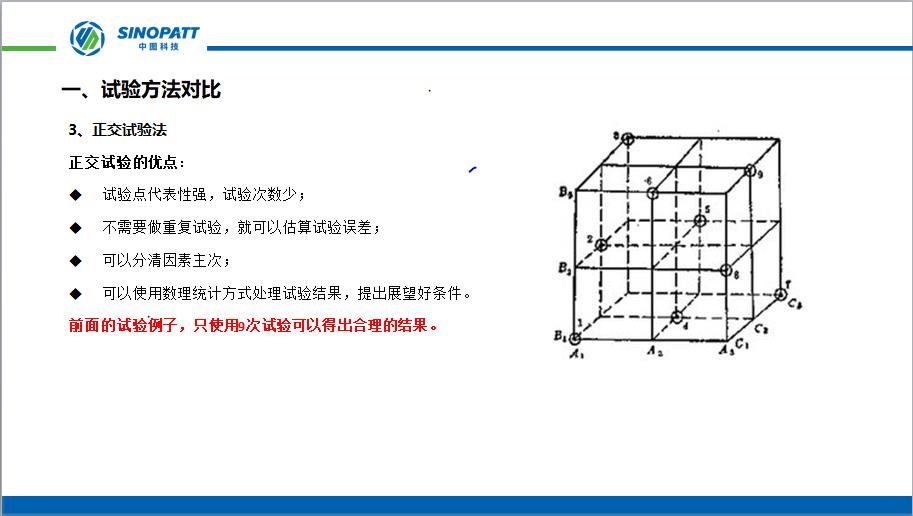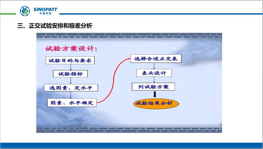 初總此次培訓(xùn)通過試驗方法的對比,清楚地讓我們了解到對于多個存在相互關(guān)系的因素進(jìn)行條件試驗,正交試驗法能夠快速分清因素的主次,并且不需要做重復(fù)試驗就可以估算試驗誤差,對于提高我們的實驗效率有很大作用。同時,初總還詳細(xì)地為我們介紹正交試驗表,同時結(jié)合理論與實例講解了正交試驗的安排、極差分析以及方差分析,讓大家能夠更加深入全面地認(rèn)識并學(xué)會應(yīng)用正交試驗。