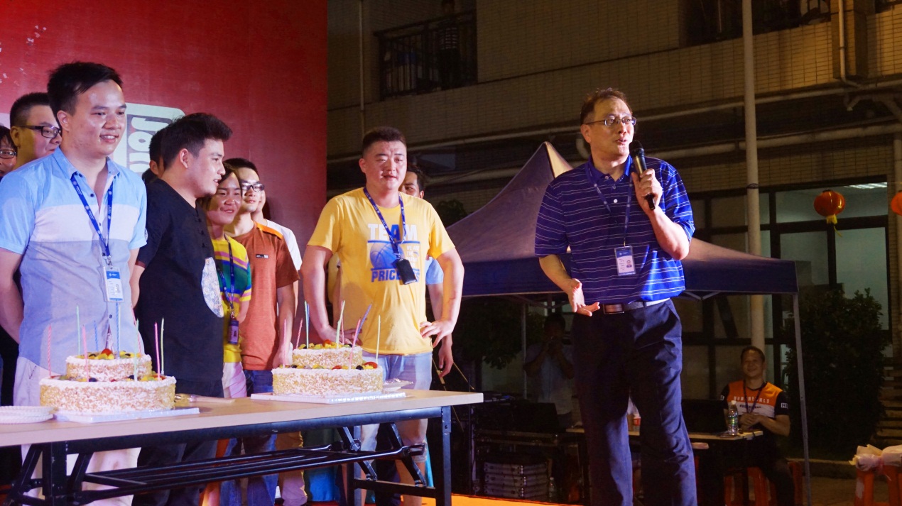 緊張的比賽過后,開展了第三季度的生日會,壽星們齊聚一堂,一起許愿切蛋糕!康總為壽星們送上生日祝福,同時也祝全體員工中秋快樂,闔家幸福,一起度過這個美好的夜晚。