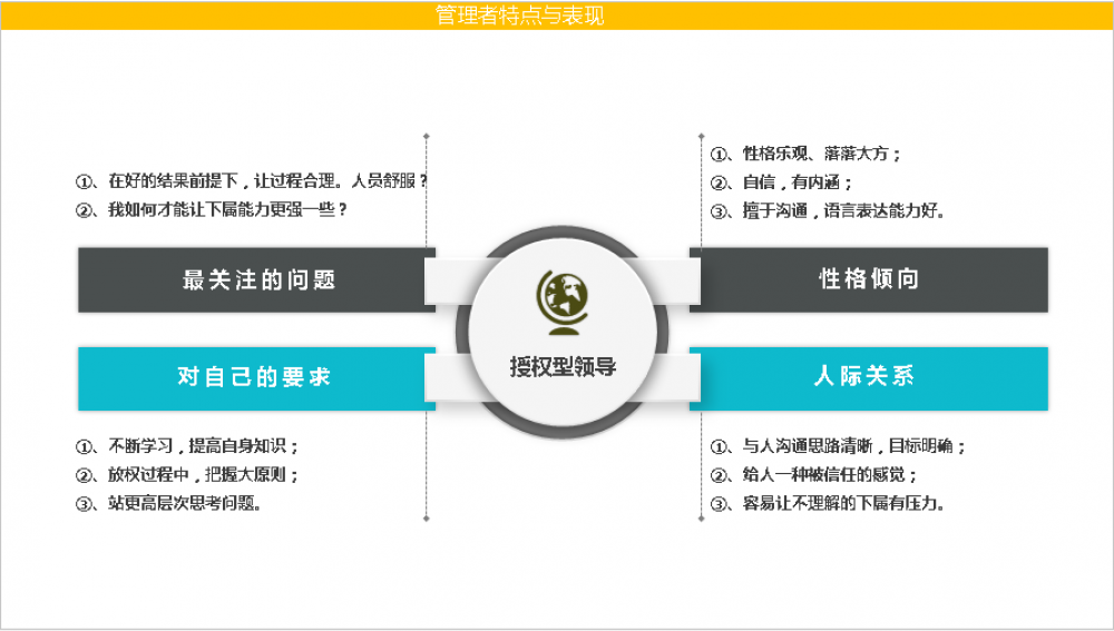 ![]() 3、授權(quán)型領(lǐng)導(dǎo)風(fēng)格
