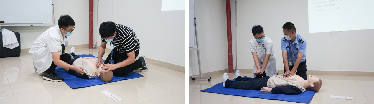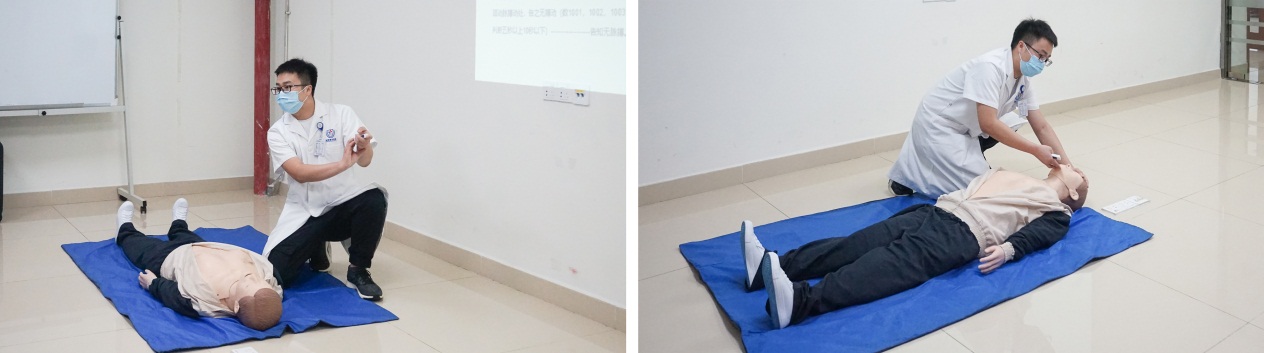 ![]() 現(xiàn)場學(xué)員分別進行現(xiàn)場模擬操作,講師一對一指導(dǎo)員工進行了實練操作,提高了員工對突發(fā)事件的應(yīng)急處置能力,使大家都能夠熟練掌握心肺復(fù)蘇急救方法。