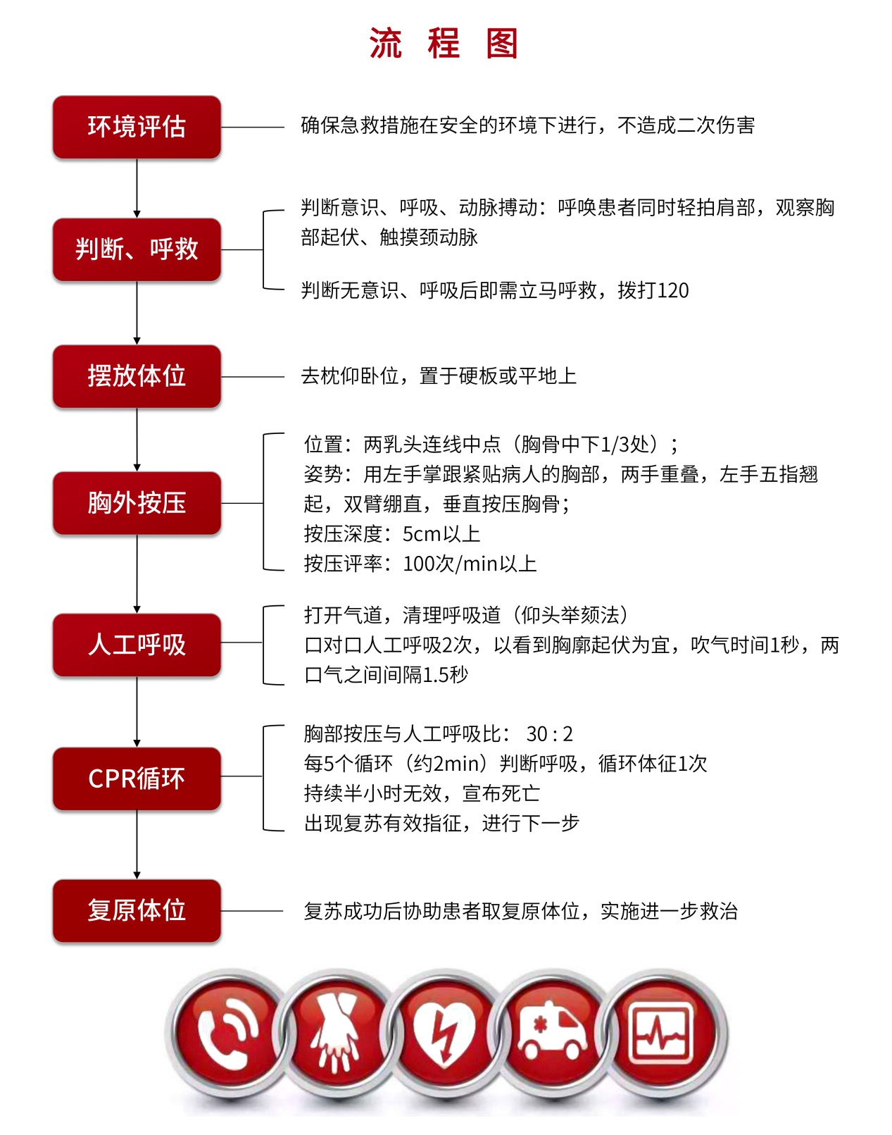 心肺復(fù)蘇術(shù)是針對由于各種原因?qū)е碌男牟E停,在4~6分鐘內(nèi)所必須采取的急救措施之一。其目的在于盡快挽救腦細(xì)胞在缺氧狀態(tài)下壞死(四分鐘以上開始造成腦損傷,十分鐘以上即造成腦部不可逆之傷害),對搶救生命有著重要的意義。心肺復(fù)蘇適用于心臟病突發(fā)、溺水、觸電、窒息或其他意外事件造成之意識昏迷并有呼吸及心跳停止之狀態(tài)。