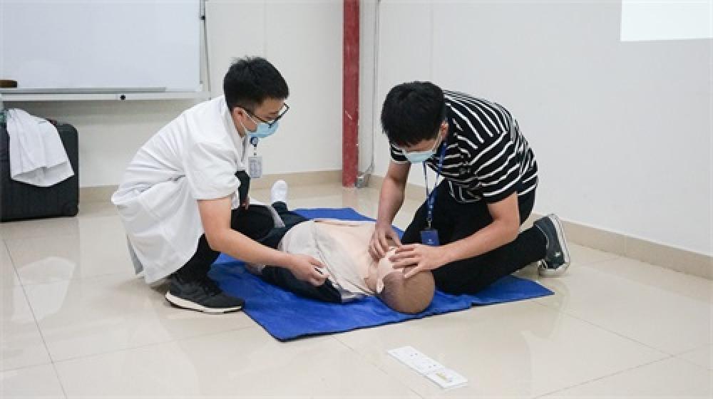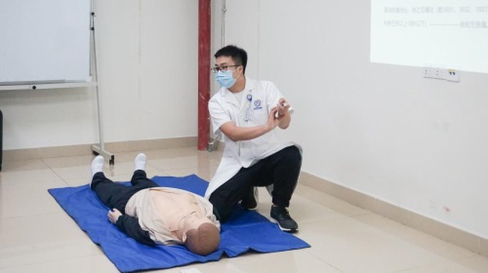 ![]() 培訓(xùn)現(xiàn)場,授課醫(yī)生首先對相關(guān)急救知識與心肺復(fù)蘇技能進行理論講解,詳細(xì)介紹了心肺復(fù)蘇程序的注意事項以及具體的實施要求。實操演練環(huán)節(jié),授課老師通過對“模擬人”實施心臟復(fù)蘇搶救,演示了主要操作要點,包括環(huán)境評估、判斷意識呼吸和動脈脈搏,擺放體位、進行胸外心臟按壓、開放氣道、人工呼吸等環(huán)節(jié)。
