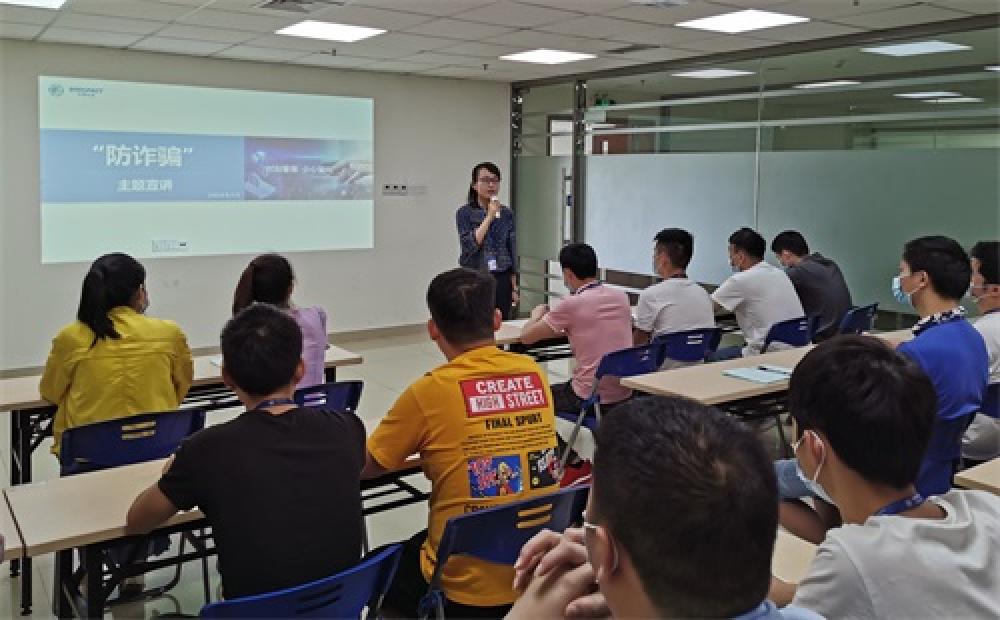 反詐警示—《“防詐騙”主題宣講》來源:中圖科技 發(fā)布時(shí)間:2020-07-13 點(diǎn)擊:5404 次為進(jìn)一步做好特殊時(shí)期防范詐騙宣傳工作,提高員工識(shí)騙防騙的意識(shí)和能力,2020年7月9日,由行政人事部副經(jīng)理羅薇擔(dān)任講師,在公司內(nèi)部開展了“防詐騙”主題宣講,生產(chǎn)部全體班組長(zhǎng)及各部門代表逾60名員工參加本次培訓(xùn)。