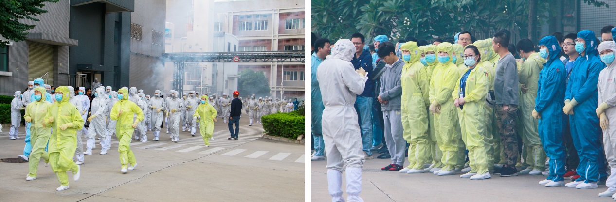 上午8時(shí),本年度消防演練正式開始。伴隨著急促的消防警報(bào)聲和廣播聲響起,公司廠房前空地陸陸續(xù)續(xù)出現(xiàn)了各部門人員的身影。