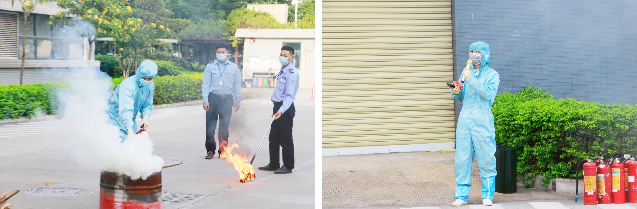 為有效展示當(dāng)發(fā)生火情時(shí),作為第一發(fā)現(xiàn)人該如何處理。設(shè)備部人員在集合點(diǎn)演示了發(fā)現(xiàn)火情后迅速疏散火情現(xiàn)場(chǎng)人員、使用滅火器材滅火、發(fā)現(xiàn)火情無(wú)法受控后即刻上報(bào)消防控制中心、請(qǐng)求動(dòng)力部搶險(xiǎn)組支援等系列操作。