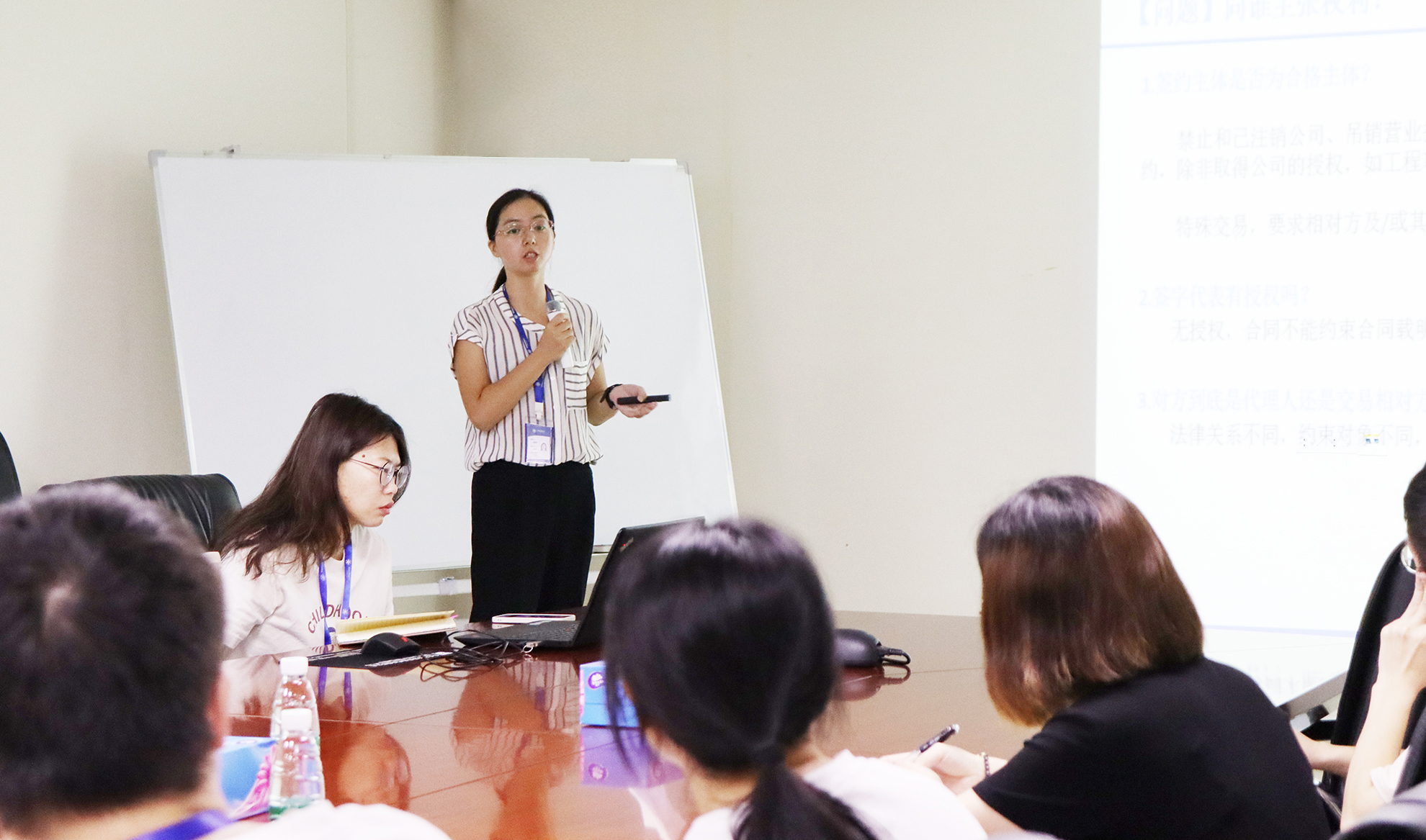 為進一步提高依法治企的水平和能力,規(guī)范公司合同管理,有效控制在訂立合同、履行合同過程中存在的風(fēng)險,及時維護公司權(quán)益,8月31日下午,公司舉辦《合同風(fēng)險防范》專業(yè)類培訓(xùn)。本次培訓(xùn)由總經(jīng)辦任娜娜律師進行專題講授,合計20余人參加培訓(xùn)。